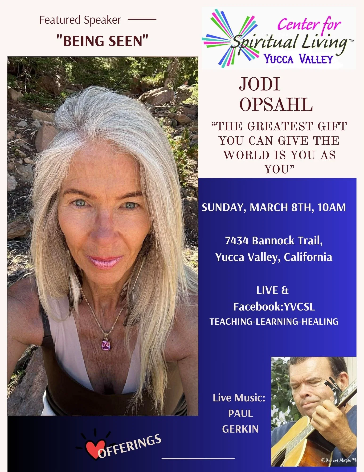 in person at our Center in Yucca Valley, CA,
